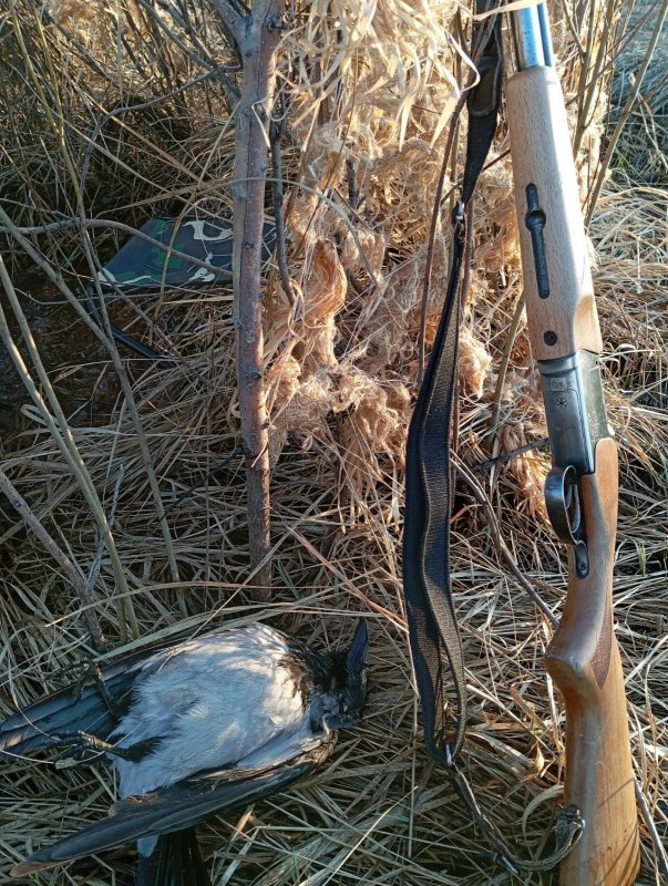 Сижу,жду….. Налетает серая ворона. Стрелять — не стрелять. Хочется первым выстрелом по селезню долбануть, а тут ворона…пока думал она улетела. Жду… Опять налетает ворона- бью, падает комом. Даже не дернулась. Сам себя похвалил за выстрел.
