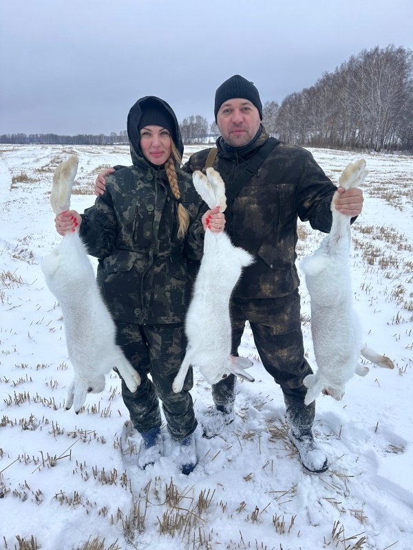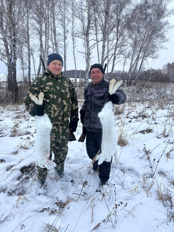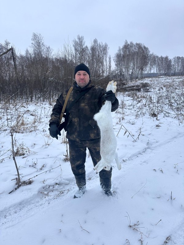 Сегодня с утра погода прям сказка,свежая пороша,слабый ветерок,следы читаются как на бумаге.Поставили машину в перспективном месте и вперёд в поисках косых!Всё по классике,след,скидка -другая и вот он косой!Злоупотреблять не стали,по зайчику на брата и в 12 охоту уже закончили,прогулялись хорошо,белячка в достатке)